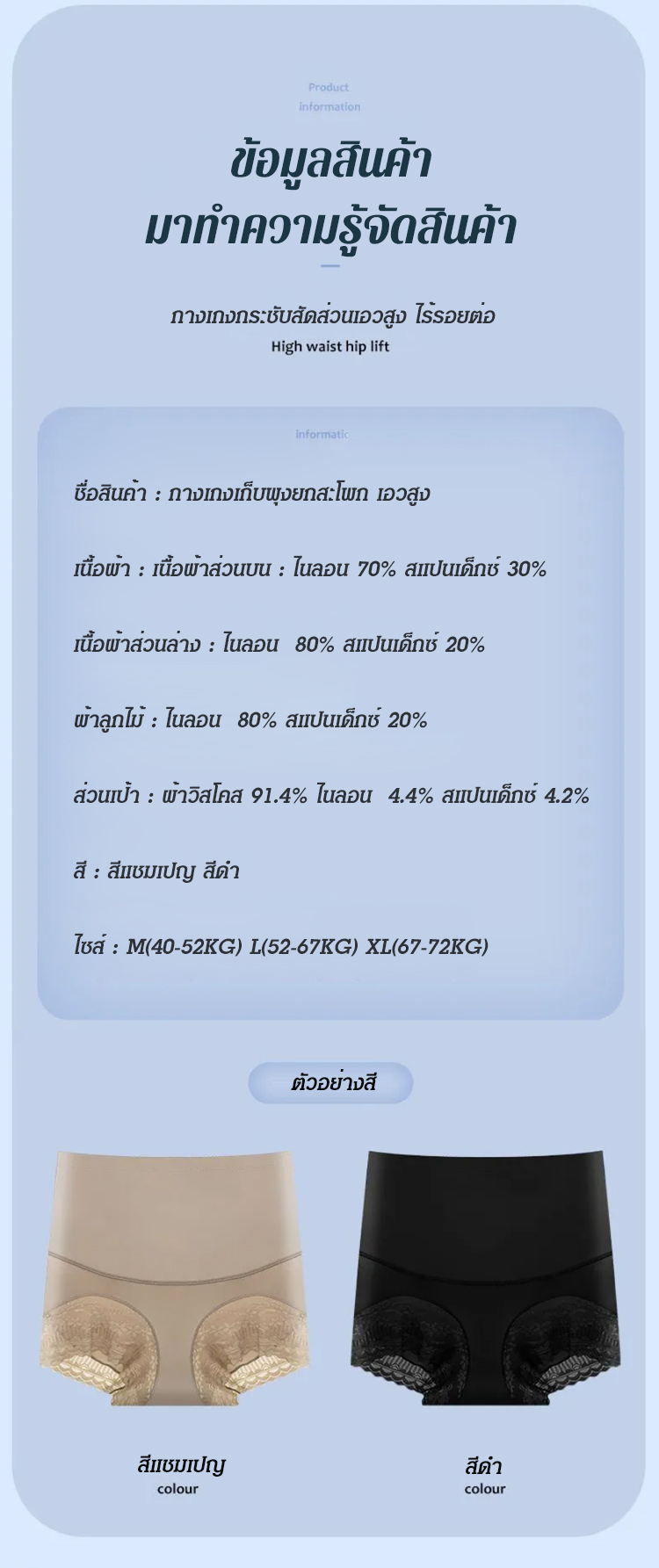 กางเกงในเก็บพุงเอวสูง ไร้ขอบ ผ้าไหมน้ำแข็ง ระบายอากาศ ใส่สบายกระชับสะโพก ไม่ม้วน