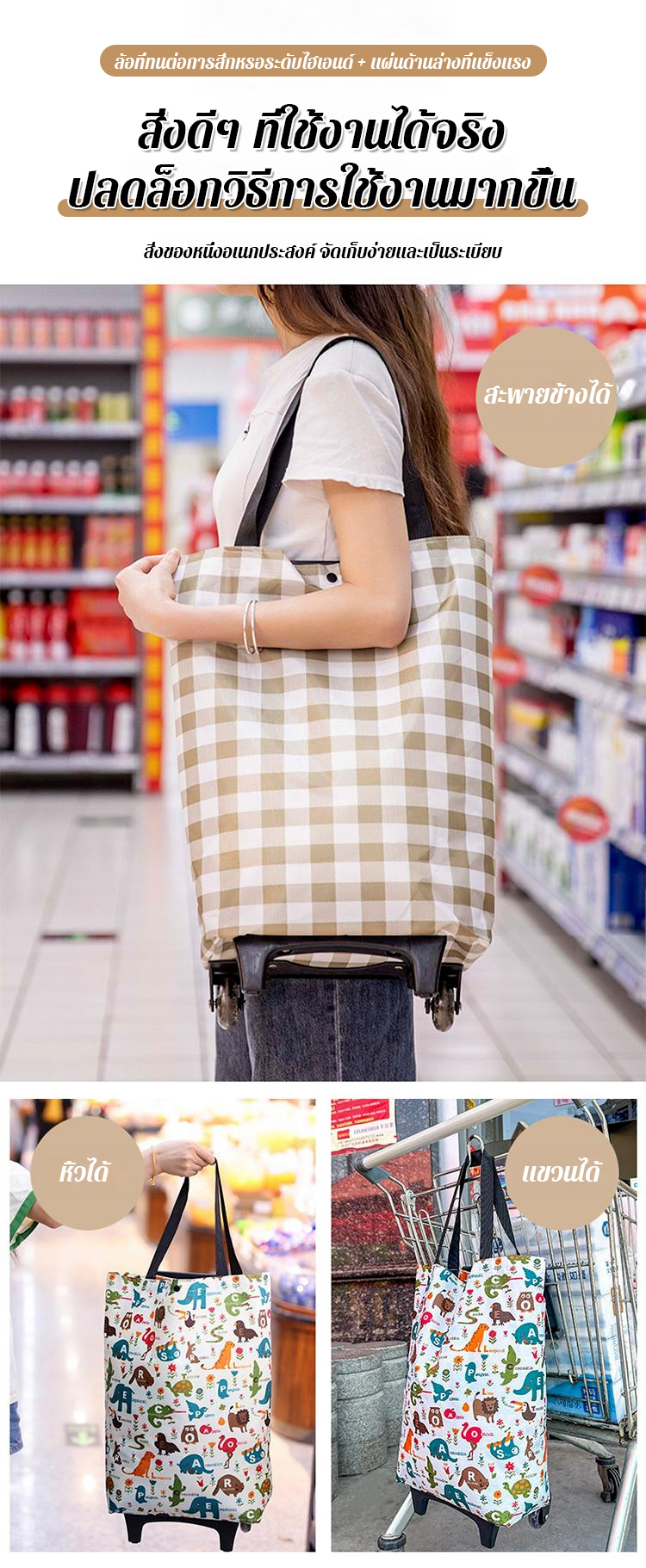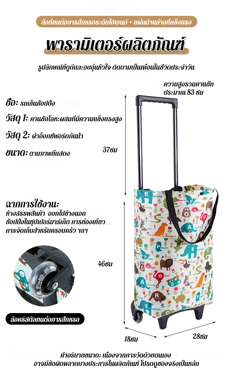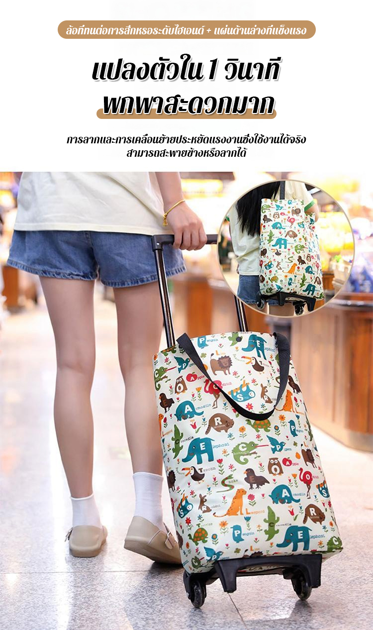 รถเข็นช้อปปิ้ง ยืดหดได้ - ก้านลากพับเข็นสะดวก วัสดุเกรดพรีเมียม ทนทาน รับน้ำหนักได้เยอะ - คันเดียวจบทุกการช้อป!