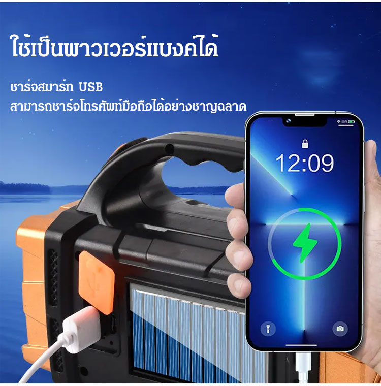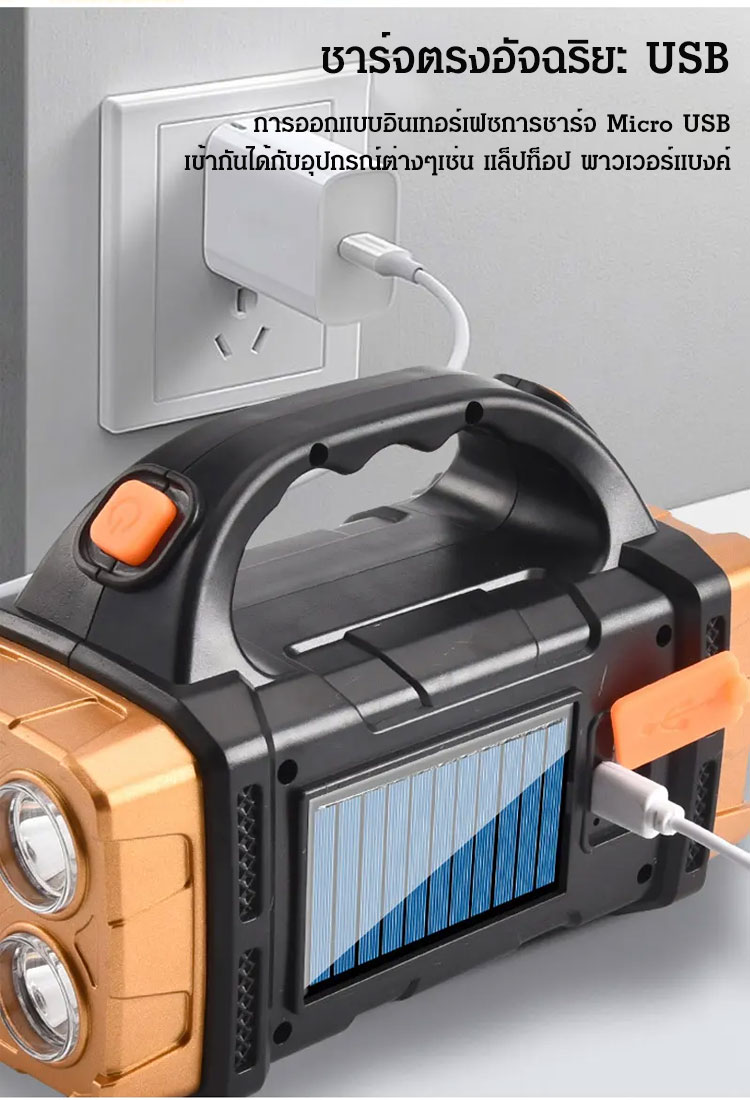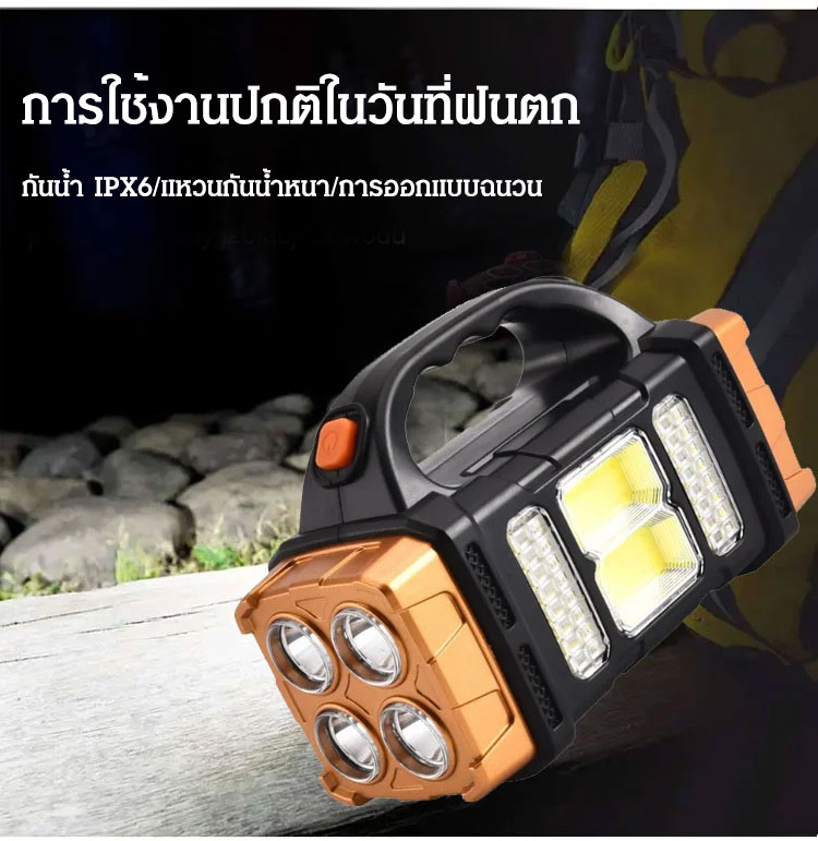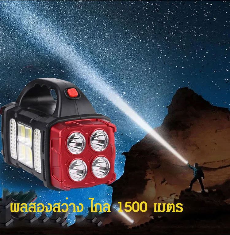 ไฟฉายสปอร์ตไลท์ King Kong 8 ตา 3 ไฟ - สว่างแรงพิเศษ ชาร์จโซลาร์เซลล์ กันน้ำ ทนทานระดับกองทัพ