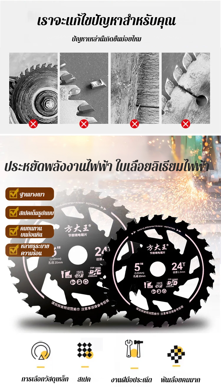 ใบเลื่อยลิเธียมประหยัดพลังงาน [5 นิ้ว] 125 มม. 24 ฟัน