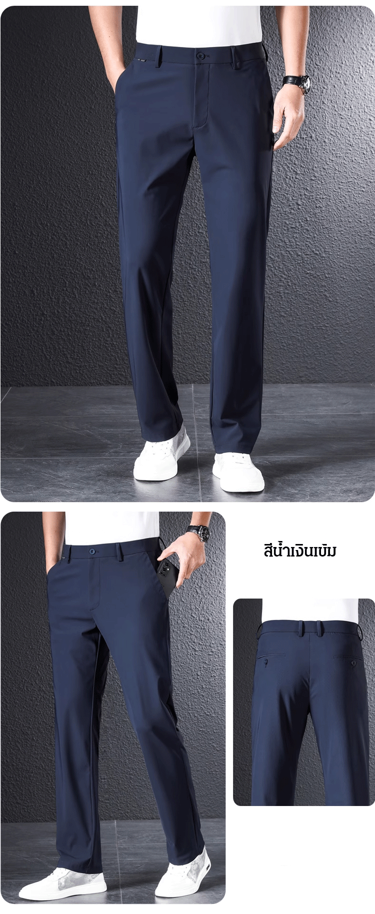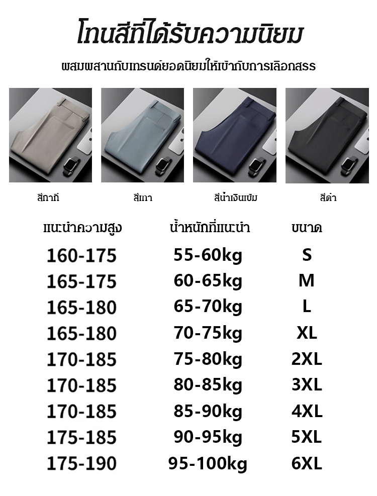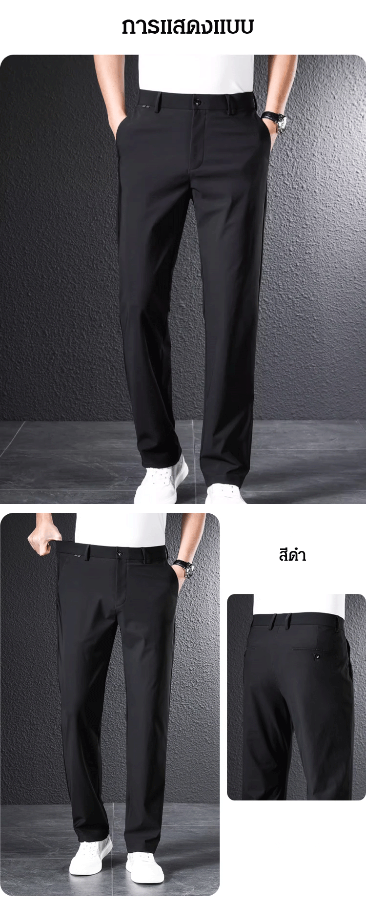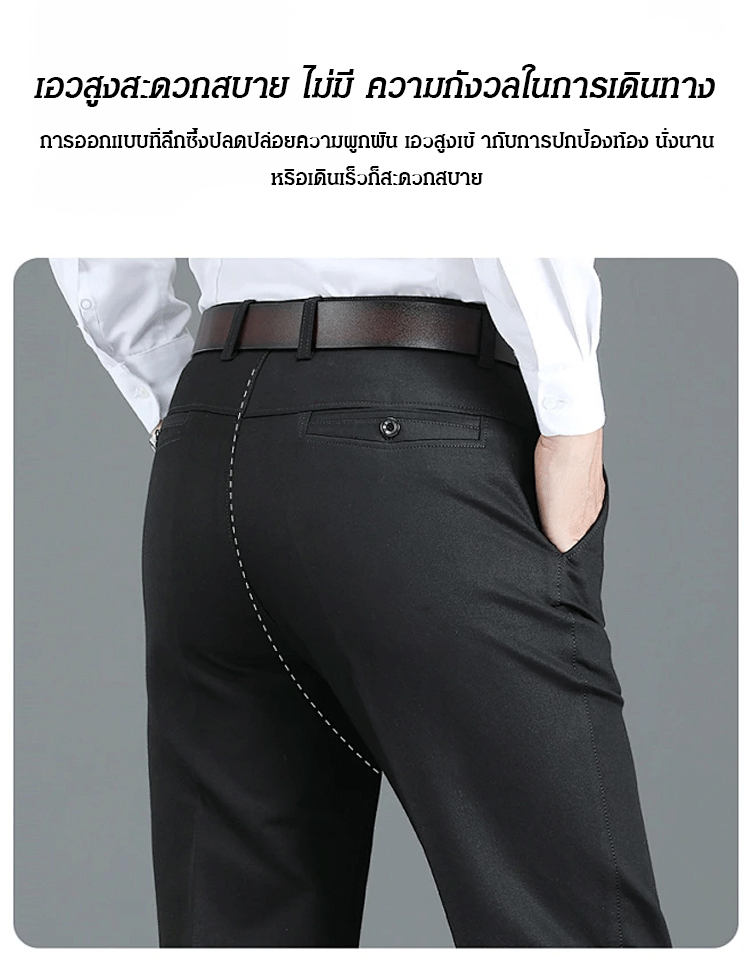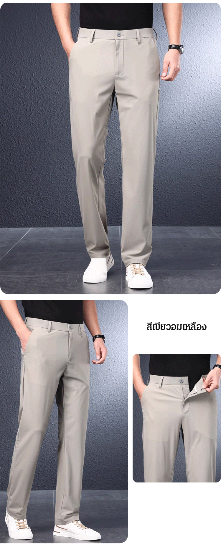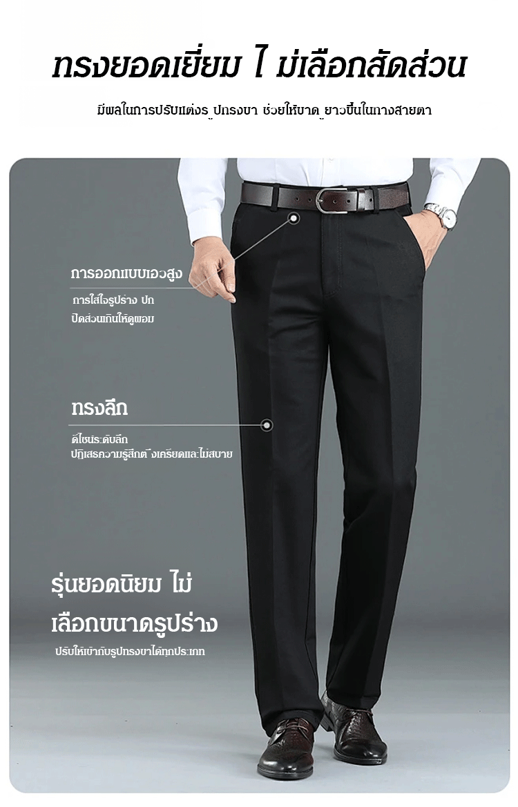 กางเกงสแล็คชาย ผ้าไอซ์ซิลค์ (Ice Silk) ยืดหยุ่นพิเศษ เย็นสบาย 0 องศา | ทรงกระบอกเล็ก ไม่ต้องรีด ระบายอากาศได้ดี
