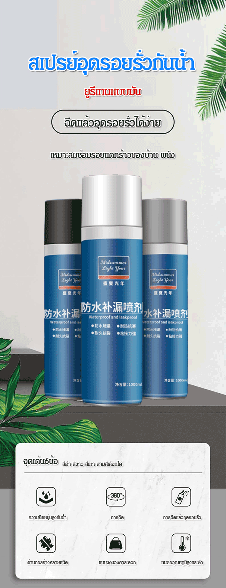 สเปรย์กันรั่วซึมหลังคาและผนัง อุดรอยแตกอเนกประสงค์ ยืดหยุ่นสูง กันน้ำ 100% สำหรับหลังคาเมทัลชีทและคอนกรีต