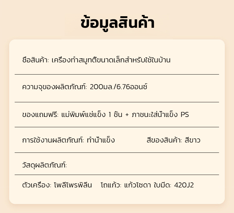 สีขาวงาช้าง + แม่พิมพ์น้ำแข็ง *1 + PS ถ้วยรองน้ำแข็ง 1