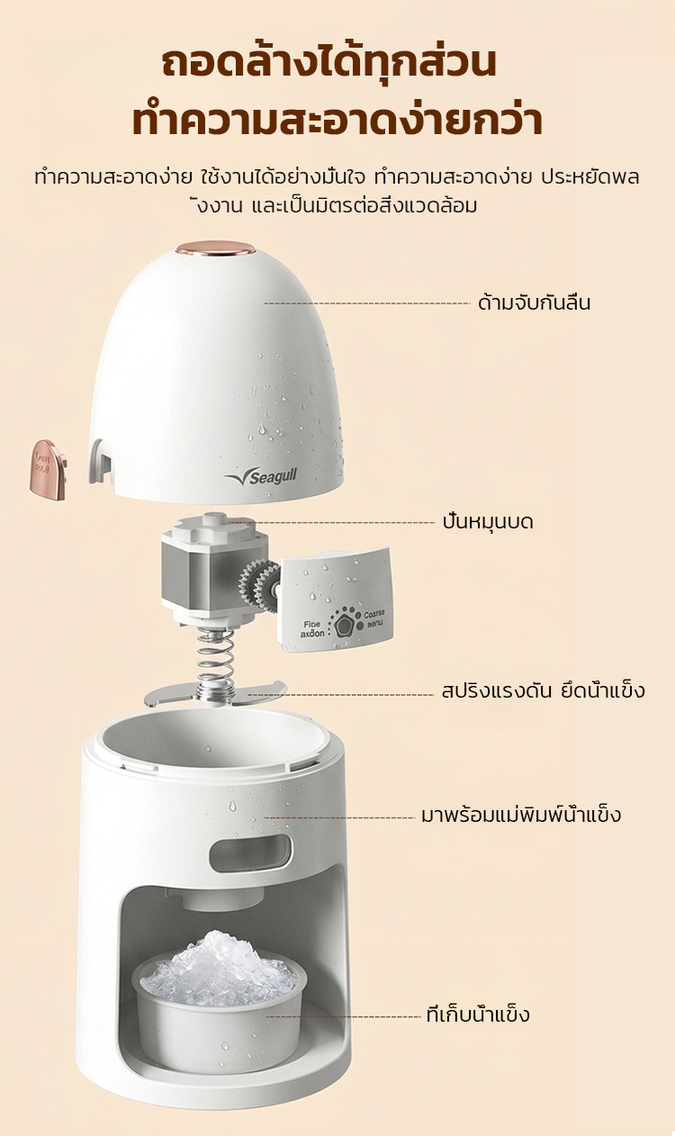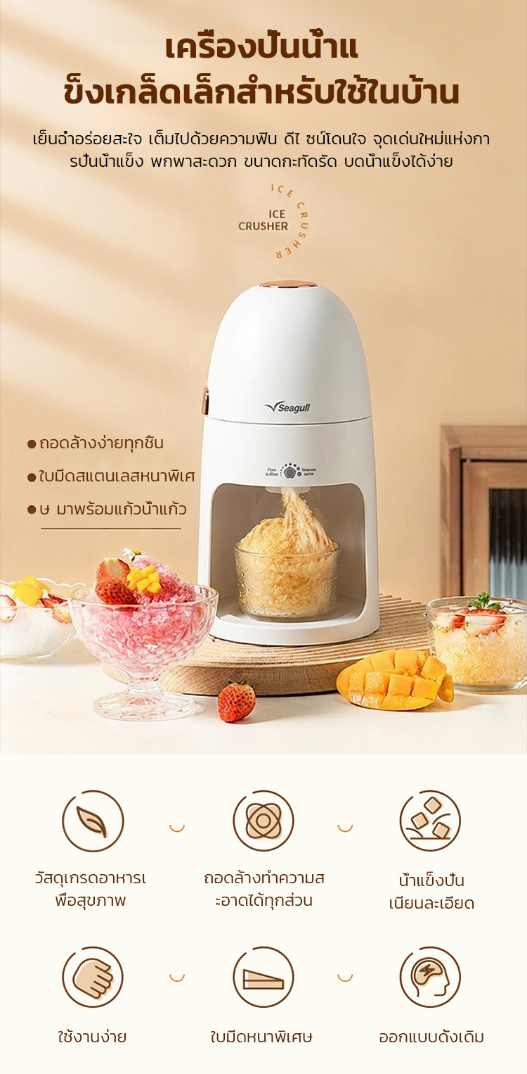 เครื่องทำน้ำแข็งไสพกพา 3 วินาที | เครื่องทำบิงซูไฟฟ้าอัตโนมัติ ปุ่มเดียวบดเนียนนุ่ม ทนทาน ใช้ง่าย